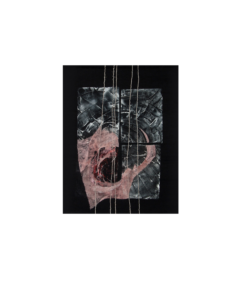 Smaigstymas adata, monotipija. Sintetika, lino siūlai, fetras